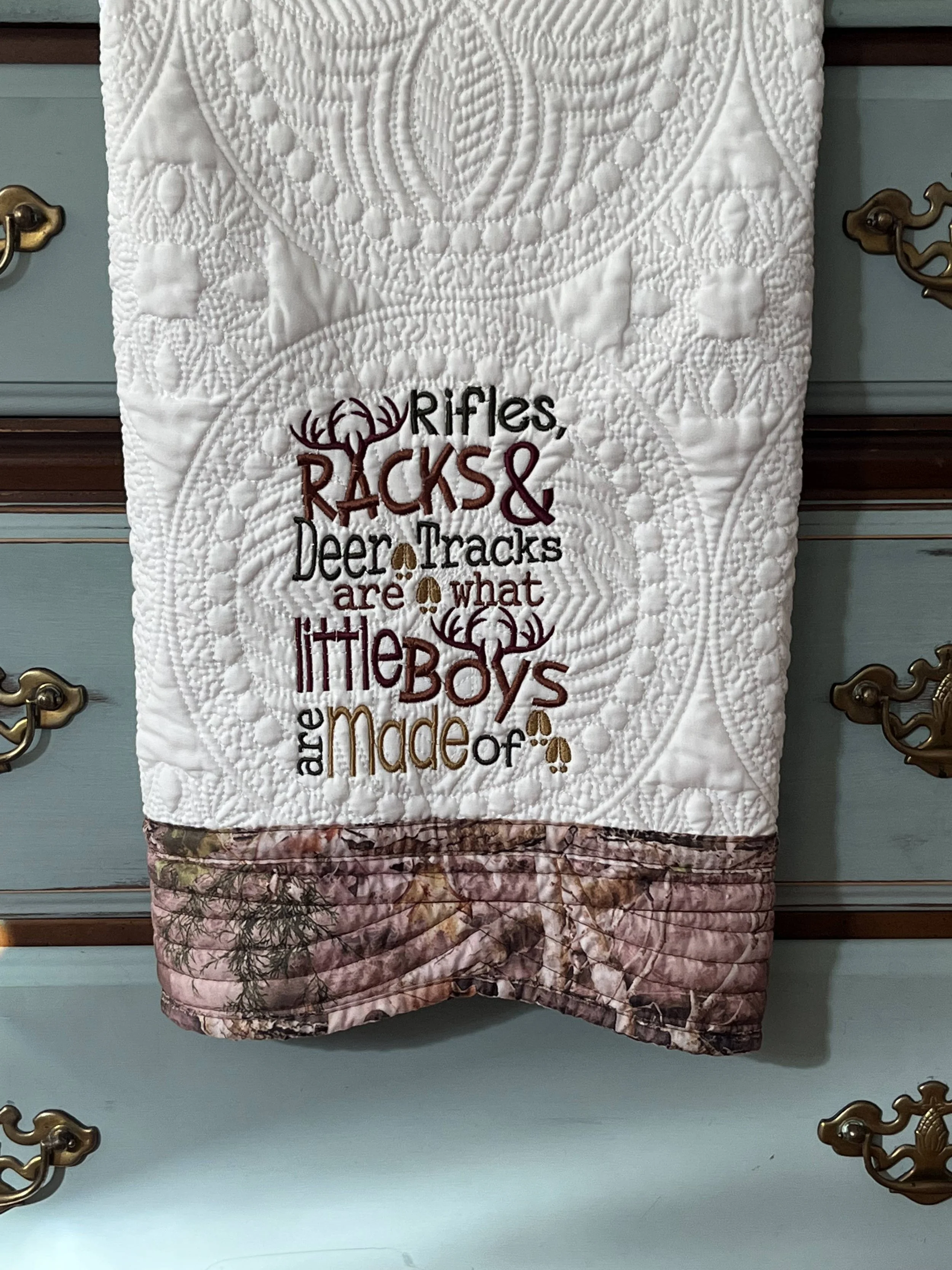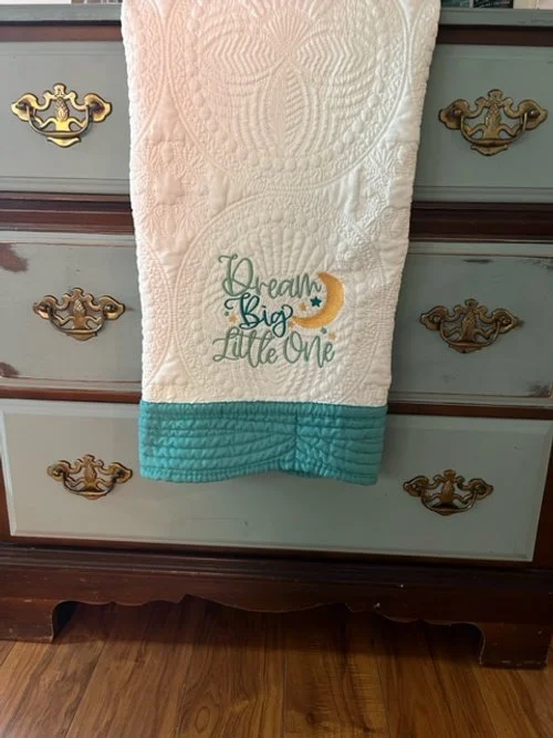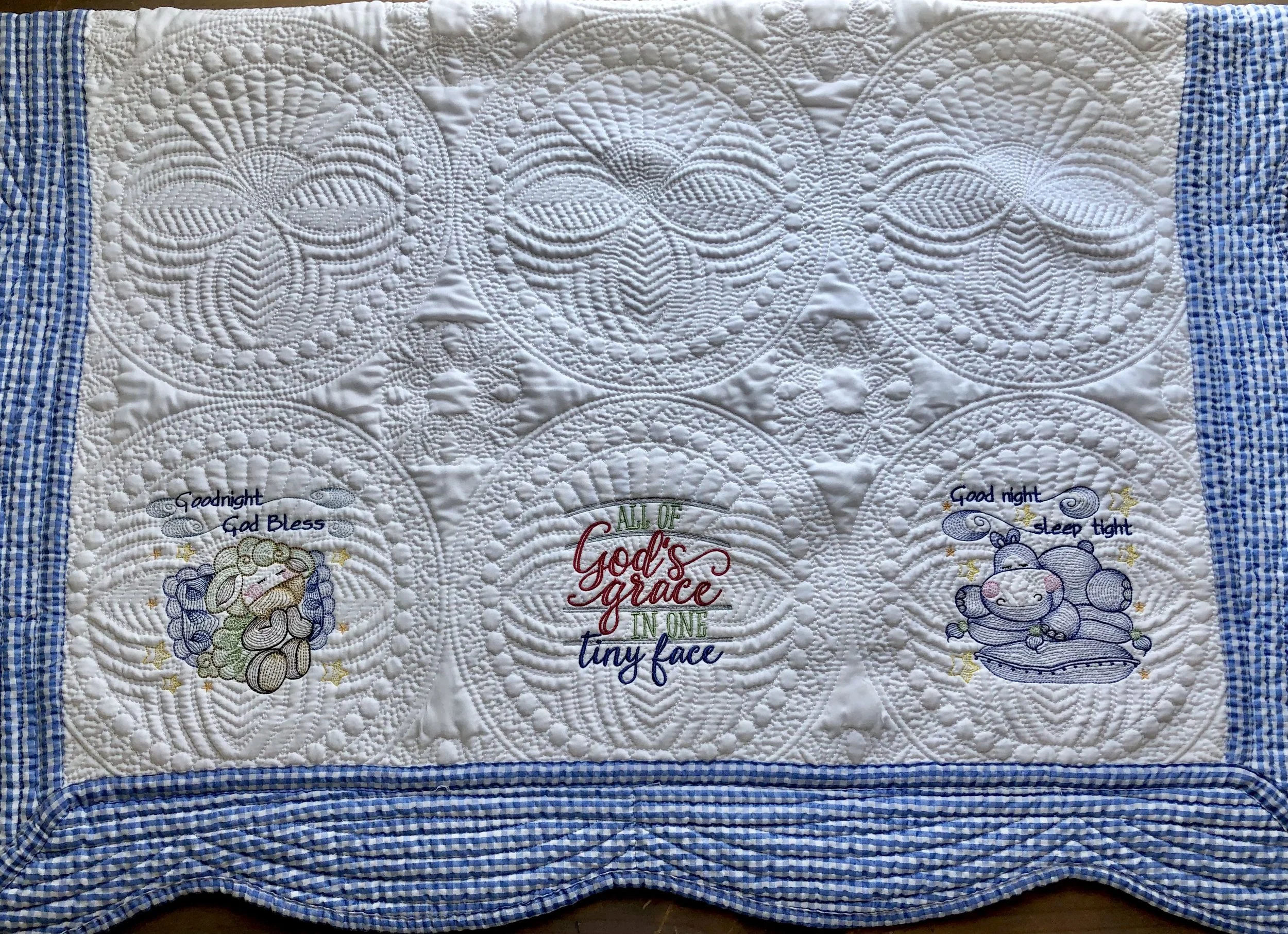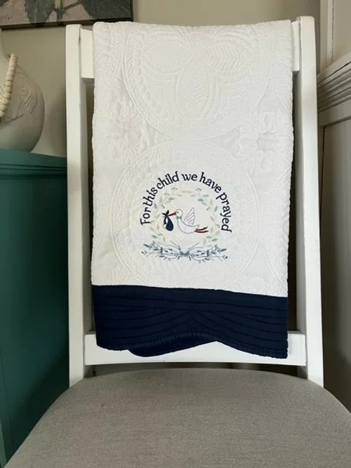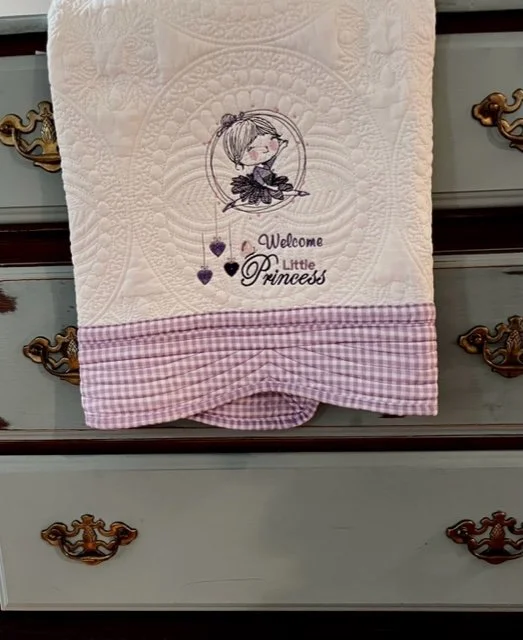 These timeless Heirloom Quilts are 36” x 46” of pure, soft cotton. Lovely scalloped trim edges for added delicate touch. Use as a decorative nursery room accent or every day blanket. A perfect addition to baby’s bedroom, as a stroller cover, or for tummy time.