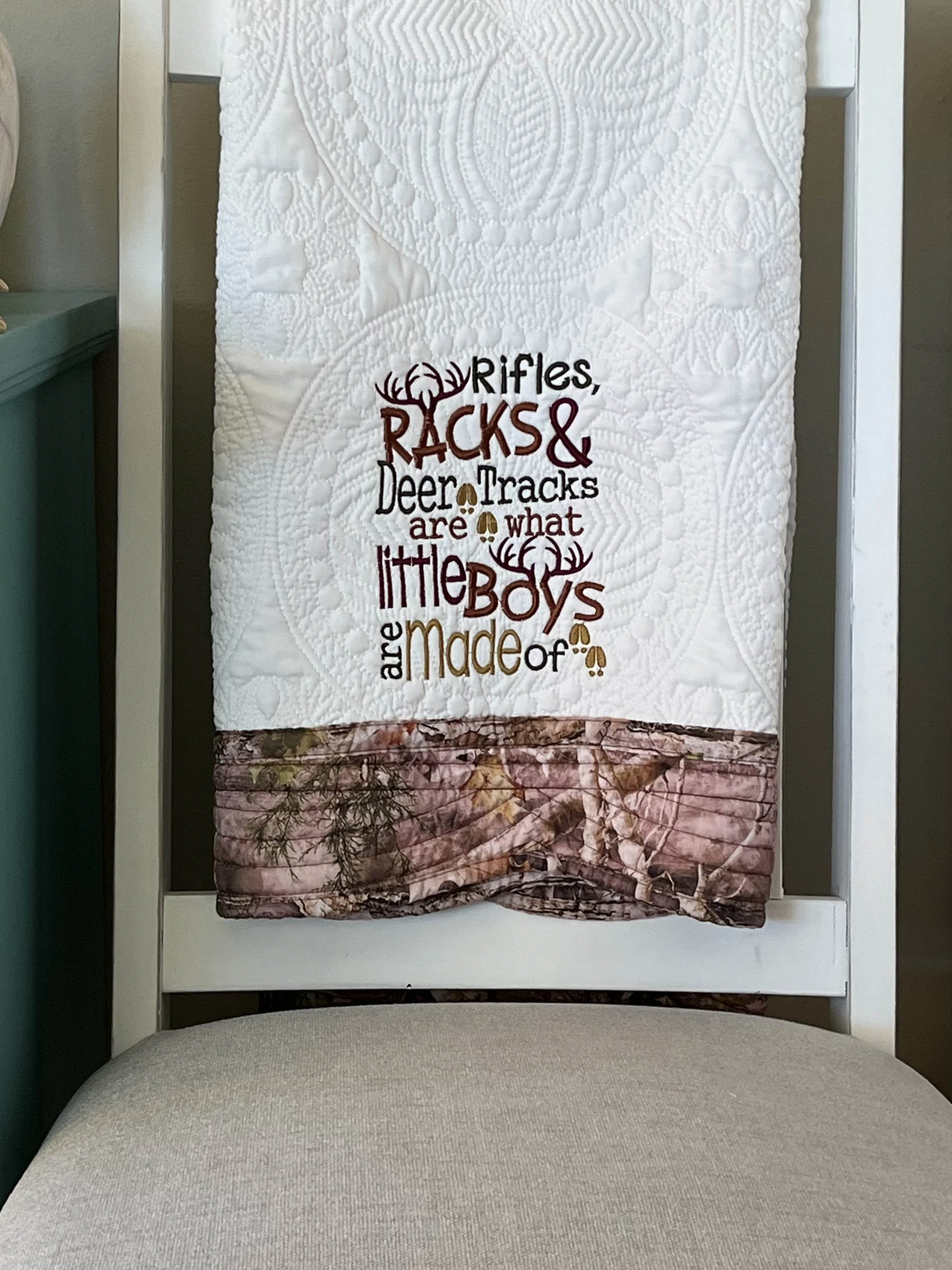 Starting @ $64.99, this includes one design. Single name personalization at a small up-charge. Design will be embroidered in the bottom middle of the blanket unless noted otherwise.