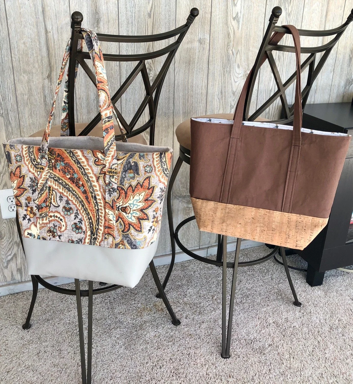 The perfect bag — lightweight yet roomy: Finished size is 12” W top and bottom, x 16” W center x 9 ½” H and 4” D